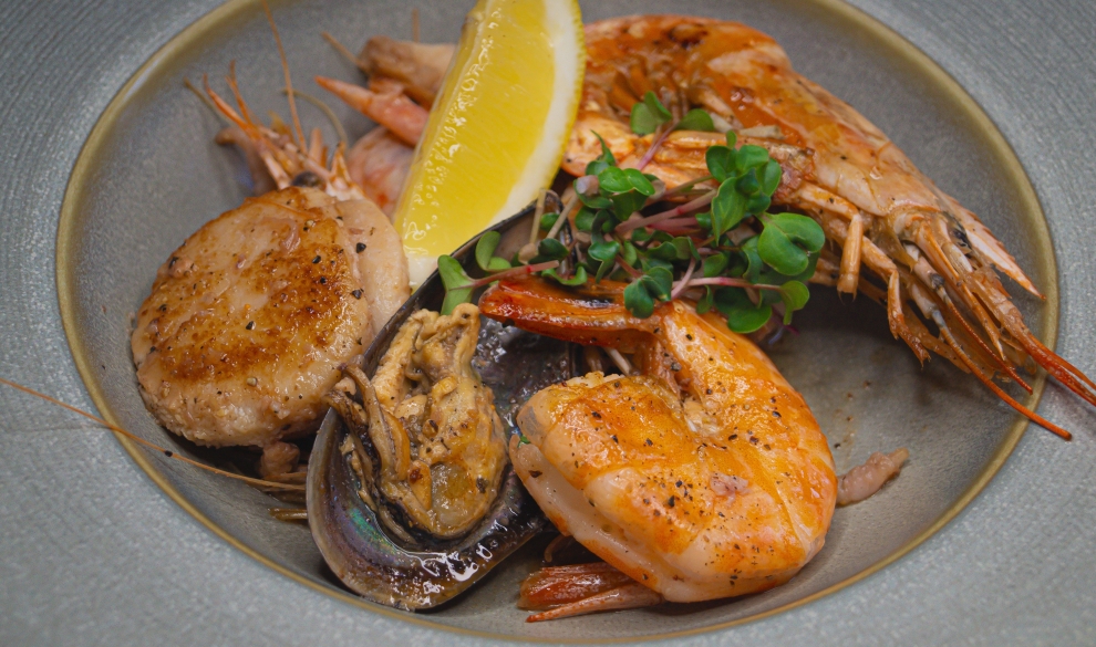 Мидии зелёные, гребешок, щупальца кальмара, креветка тигровая, креветка аргентинская, креветка северная, осьминоги бейби.
